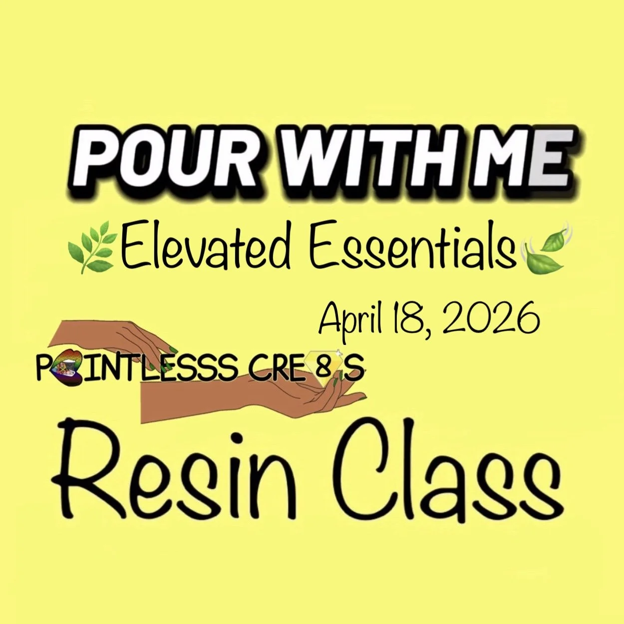 Resin requires curing time. Finished pieces will be ready for pickup 1–2 days after the class.