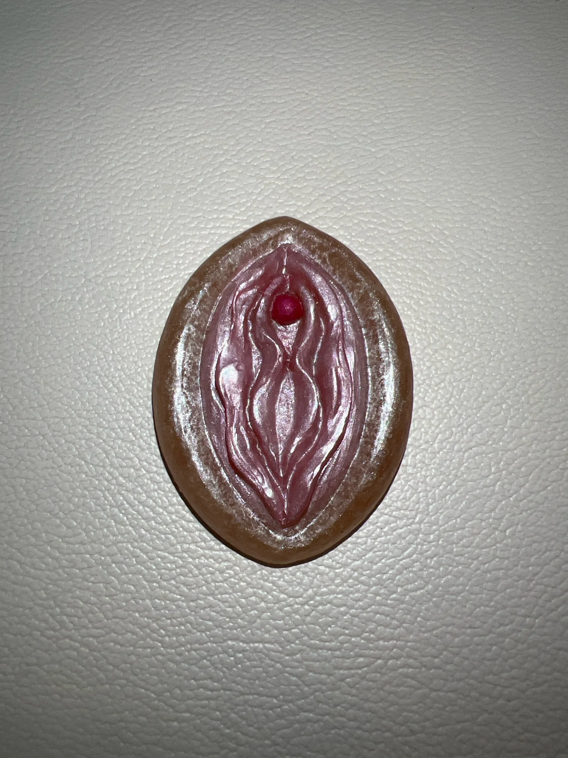 Brown vulva with black glitter stubble. Can be used as a rest or as an altar accessory/home decor.